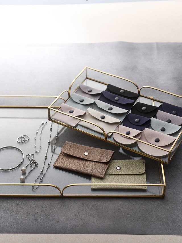型番:AR-780 サイズ:60×47×7mm 素材:スェード調 色:黒・紺・グレー・セイジ・ピンク・ベージュ 上品な質感のスェード調生地を使用したポーチです。 ホックボタン付きなので持ち運びにも便利です。 アフターユーズとしても使用でき好評です。 納期:ご注文完了後約3日(営業稼働日)で発送させて頂きます。 リアルタイム在庫が変動している為、在庫切れの場合がございます。 予めご了承お願い致します。 在庫切れの場合は、納期を改めてご連絡させて頂きます。
