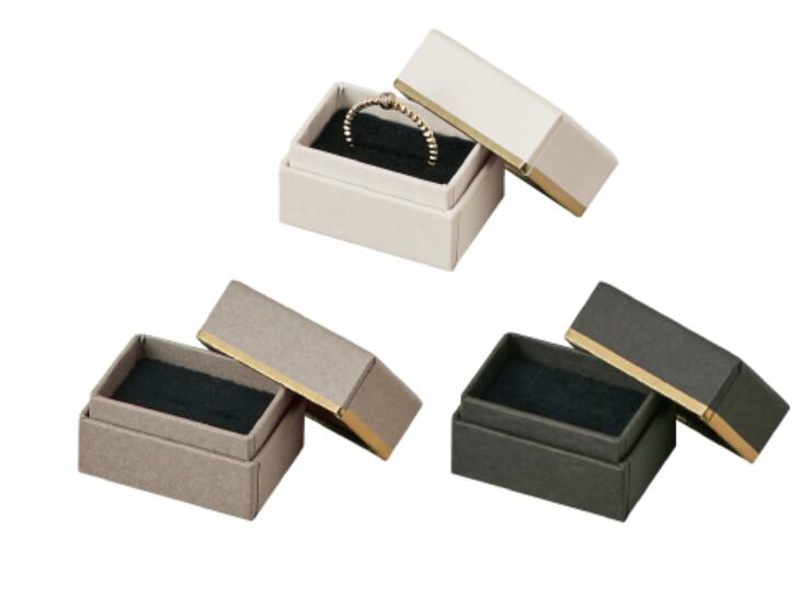 型番:AR-RE219 サイズ:36×25×28mm 素材:紙(マット紙) 色:オフホワイト・グレージュ・ダークグレー ※中台紙(ウレタン+表面スェード調生地貼り黒色+切り込み有り) 中のスェード調生地はブラックです。 人気のミニシリーズのミニミニコンビ型ボックスです。 落ち着いたカラー3色展開です。 小さなリング・ピアスがセットできる切込みです。 納期:ご注文完了後約3日(営業稼働日)で発送させて頂きます。 リアルタイム在庫が変動している為、在庫切れの場合がございます。 予めご了承お願い致します。 在庫切れの場合は、納期を改めてご連絡させて頂きます。