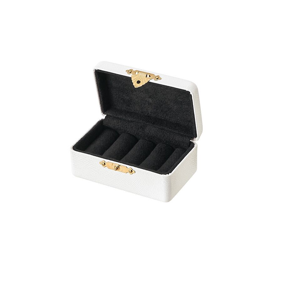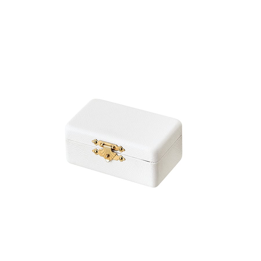 型番:AR-J155CA サイズ:86×57×38mm 素材:合成レザー 内装:スェード調 色:白・黒 外箱:ミ・フタ貼り箱付き(白色は外箱マット紙白・黒色は外箱マット紙黒) 台紙はリングの連差しのような仕様になっています。リングやピアスを差し込み収納します。 前金具がアンティーク風で非常に可愛いジュエリーボックスです。 ギフトボックスや販促ノベルティにも最適です。 納期:ご注文完了後約3日(営業稼働日)で発送させて頂きます。 リアルタイム在庫が変動している為、在庫切れの場合がございます。 予めご了承お願い致します。 在庫切れの場合は、納期を改めてご連絡させて頂きます。