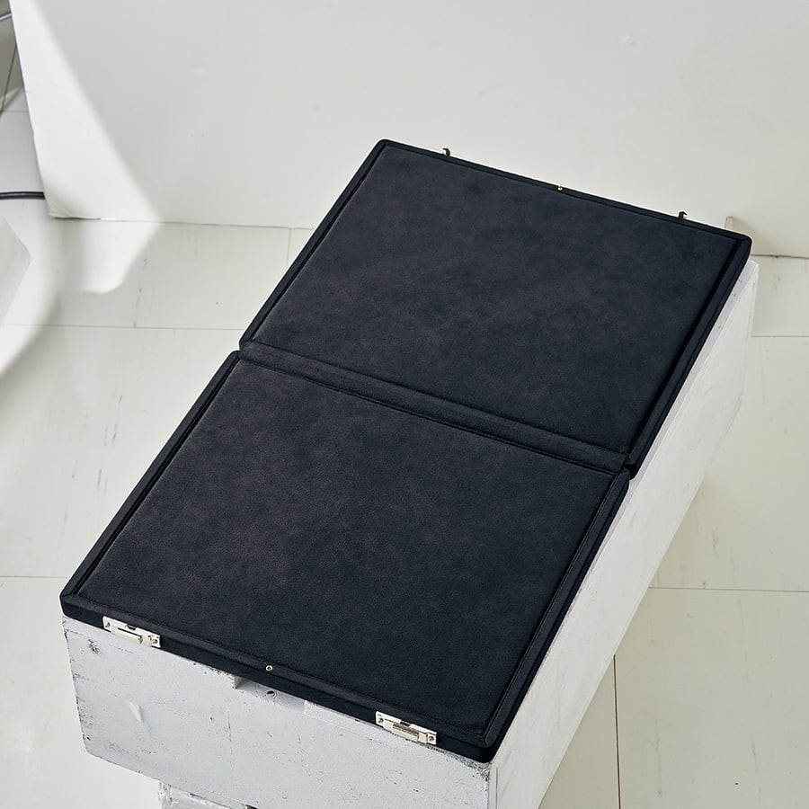 型番:AR-5580F サイズ:301×258×42㎜ 素材:外装生地:スェード調 内装生地:スェード調 色:黒/黒・黒/ベージュ・焦げ茶 外箱:クラフト箱付き 内側は両面クッション入りの為、ティアラやチョーカーのようなデザインの商品を保護ができます。 大きめのネックレスなど収納するにも便利なケースです。 納期:ご注文完了後約3日(営業稼働日)で発送させて頂きます。 リアルタイム在庫が変動している為、在庫切れの場合がございます。 予めご了承お願い致します。 在庫切れの場合は、納期を改めてご連絡させて頂きます。