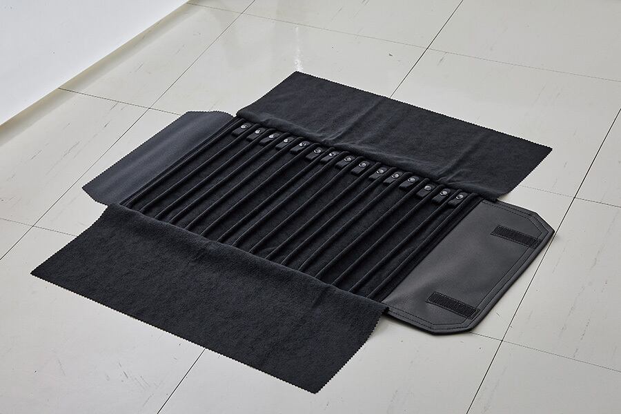 型番:AR-V-09 サイズ:75×275×75㎜(巻いた状態) 素材:外装生地:合成レザー 内装生地:スェード調 色:黒・グレー ネックレスチェーンを収納・持ち運びをするのみ便利なプロツールです。 15個仕切りがついており、チェーンが絡む心配がないです。 展示会や商談の際によく使用されています。 納期:ご注文完了後約3日(営業稼働日)で発送させて頂きます。 リアルタイム在庫が変動している為、在庫切れの場合がございます。 予めご了承お願い致します。 在庫切れの場合は、納期を改めてご連絡させて頂きます。
