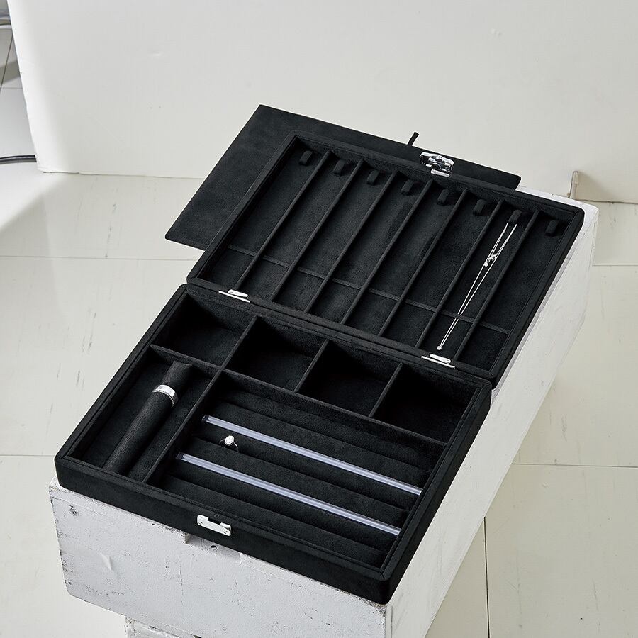 型番:AR-5970M サイズ:295×234×57mm 素材:外装生地:スェード調 内装生地:スェード調 色:黒 ネックレス8個・リング22個・フリースペース4マスのストックケースです。 展示会や商談の際によく使用されています。 納期:ご注文完了後約3日(営業稼働日)で発送させて頂きます。 リアルタイム在庫が変動している為、在庫切れの場合がございます。 予めご了承お願い致します。 在庫切れの場合は、納期を改めてご連絡させて頂きます。
