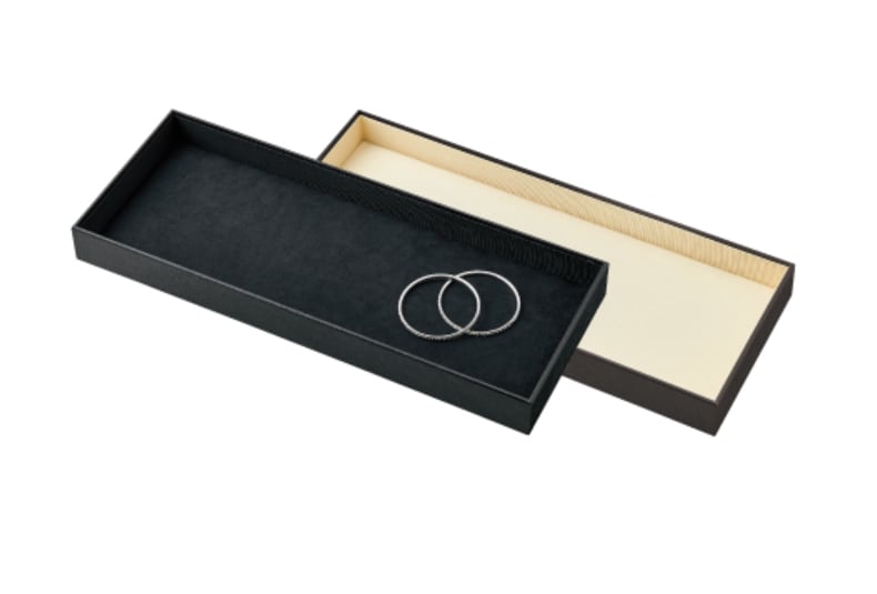 型番:AR-5600F サイズ:426×166×43mm 素材:外装生地:レザークロス 内装生地:スェード調 色:黒/黒・焦げ茶/アイボリー 耐久性のあるレザークロスと滑らかな手触りが特徴のスェード調生地を組み合わせたストックトレイシリーズです。 ダイヤモンドや地金が引き立つ黒色・パールや色石が引き立つ焦げ茶の2色よりお選びください。 納期:ご注文完了後約2日(営業稼働日)で発送させて頂きます。 リアルタイム在庫が変動している為、在庫切れの場合がございます。 予めご了承お願い致します。 在庫切れの場合は、納期を改めてご連絡させて頂きます。
