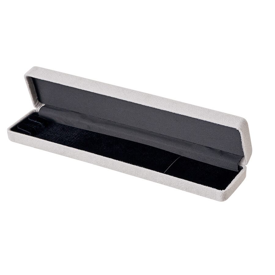 型番:AR-N111RS サイズ:223×45×27mm 素材:外装:人工スェード 内装:サテン生地・ベルベット台紙 色:グレー/白・グレー/黒・黒/白・黒/黒 色味の画像は他の型で掲載しております。ご了承ください。 外箱:ミ・フタ貼り箱付き 外装グレーはグレーマット紙箱 外装黒は黒マット紙紙箱 滑らかな手触りのスェード調生地で外装を装い、内装はサテン(蓋内側)をベルベット(台紙)を使用した エレガントなジュエリーケースシリーズです。アンティーク調の商品とも相性が良いです。 納期:ご注文完了後約2日(営業稼働日)で発送させて頂きます。 リアルタイム在庫が変動している為、在庫切れの場合がございます。 予めご了承お願い致します。 在庫切れの場合は、納期を改めてご連絡させて頂きます。