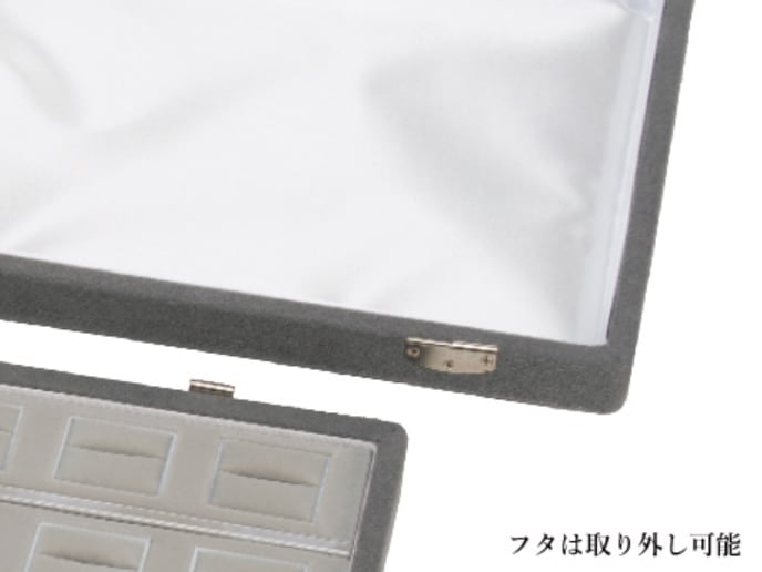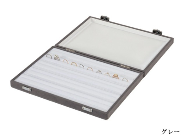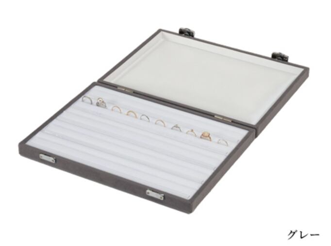 型番:AO-V-304 サイズ:308×229×44mm 素材:スェード調生地 色:グレー・ブラック リング50本が収納できるストックケースです。 蓋が取り外し可能なので、そのまま展示ディスプレイにもなります。 納期:ご注文完了後約2日(営業稼働日)で発送させて頂きます。 リアルタイム在庫が変動している為、在庫切れの場合がございます。 予めご了承お願い致します。 在庫切れの場合は、納期を改めてご連絡させて頂きます。