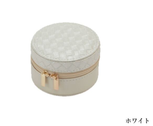 型番:AO-JC-2579A サイズ:φ85×H50㎜・巾着ポーチ:55×67mm 素材:スェード調生地 色:ホワイト・ブラウン ファスナー開閉のジュエリーポーチです。 巾着ポーチが1枚付属しています。 納期:ご注文完了後約2日(営業稼働日)で発送させて頂きます。 リアルタイム在庫が変動している為、在庫切れの場合がございます。 予めご了承お願い致します。 在庫切れの場合は、納期を改めてご連絡させて頂きます。