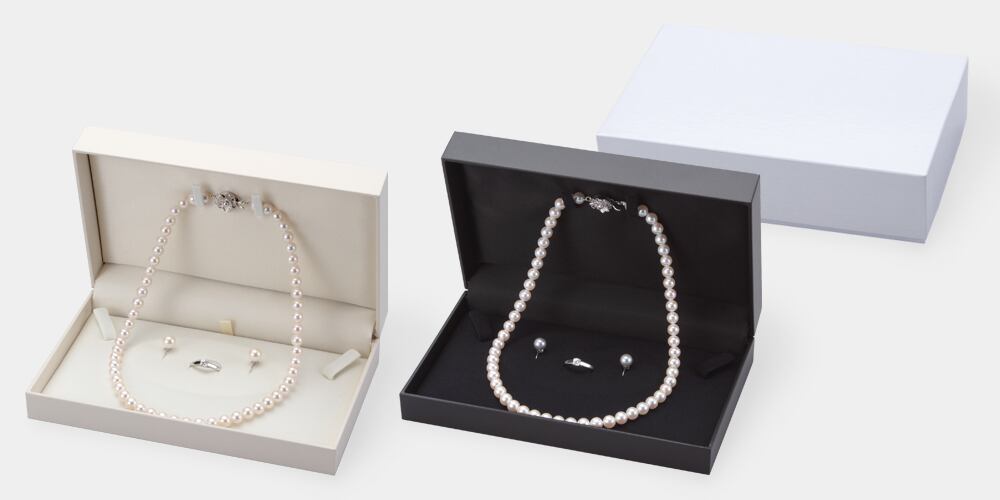 型番:GT-57-N(ネック1点用)NE(ネック・イヤリング2点用)NER(ネック・イヤリング・リング3点用) サイズ:186×115×44㎜ 外装:レザーペーパー・内装:スェード調 色:ブラック・ホワイト(色と台紙をご指定をお願い致します。) 外箱:ミ・フタ式 現在:白ツヤ紙 ※9月1日より外箱の仕様が変わりす。白無地から本体ケースに合わせた紙色に変わります。 ブラックは黒(タントN-1)マット紙 ホワイトはアイボリー(タントN-7)マット紙 より一層高級感のある外箱になります。 パール用セットケースです。 Nはネックレス1点用・NEはネックレス・イヤリング2点用・NERはネックレス・イヤリング・リング3点用となります。 ※こちらの商品は環境に優しい素材を使用して作られています。 ケース本体に再生プラスチックを使用しています。 外箱やスリーブに再生紙を使用しています。 納期:ご注文完了後約3日(営業稼働日)で発送させて頂きます。 リアルタイム在庫が変動している為、在庫切れの場合がございます。 予めご了承お願い致します。 在庫切れの場合は、納期を改めてご連絡させて頂きます。