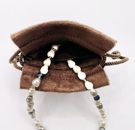 型番:PO-XL-S XLポーチS中仕切り有り サイズ:80×100㎜ 生地:マイクロスェード(両面仕様) 色:ブラック・ブラウン マイクロスェード生地で非常になめらかな質感で高級感のある巾着ポーチです。 中に仕切りが有り、ピアスを1個ずつ入れたり、ペンダントとチェーンを分けて入れたりできます。 納期:ご注文完了後約3日(営業稼働日)で発送させて頂きます。 リアルタイム在庫が変動している為、在庫切れの場合がございます。 予めご了承お願い致します。 在庫切れの場合は、納期を改めてご連絡させて頂きます。
