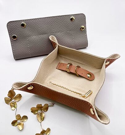 型番:AO-TR-25J ジュエリートレー サイズ:130×120×45㎜(組み立て時) 素材:合皮・スェード調 色:グレー・ピンク 外箱:白化粧箱付き 単位:10個単位 納期:ご注文完了後約3日(営業稼働日)で発送させて頂きます。 リアルタイム在庫が変動している為、在庫切れの場合がございます。 予めご了承お願い致します。