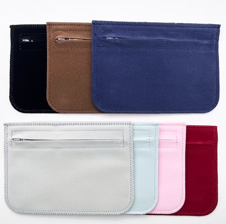 型番:A-13ファスナー付きポーチL 生地:スェード調 サイズ:150×108㎜ 色:ブラック・グレー・ブラウン・ネイビー・ブルー・ピンク・エンジ 大きめサイズで実用性抜群のファスナー付きポーチ(Lサイズ)。 アクセサリー類をしっかり保護しながらスマートに収納できる、すっきりとしたデザインが特長です。 スエード調のやわらかな質感で、見た目にも高級感があり、ギフト用や展示・販売用としてもおすすめです。 納期:ご注文完了後約3日(営業稼働日)で発送させて頂きます。 リアルタイム在庫が変動している為、在庫切れの場合がございます。 予めご了承お願い致します。 在庫切れの場合は、納期を改めてご連絡させて頂きます。