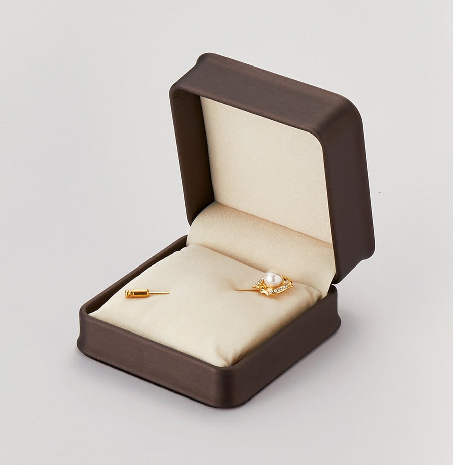 型番:AR-BB882 サイズ:96×97×56㎜ 素材:外装合成レザー 内装台紙:スェード調生地 色:外装焦げ茶/内装アイボリー 外箱:化粧箱付き 蓋天面がふっくらした仕上げでエレガントな雰囲気を演出したケースです。 納期:ご注文完了後約2日(営業稼働日)で発送させて頂きます。 リアルタイム在庫が変動している為、在庫切れの場合がございます。 予めご了承お願い致します。 在庫切れの場合は、納期を改めてご連絡させて頂きます。