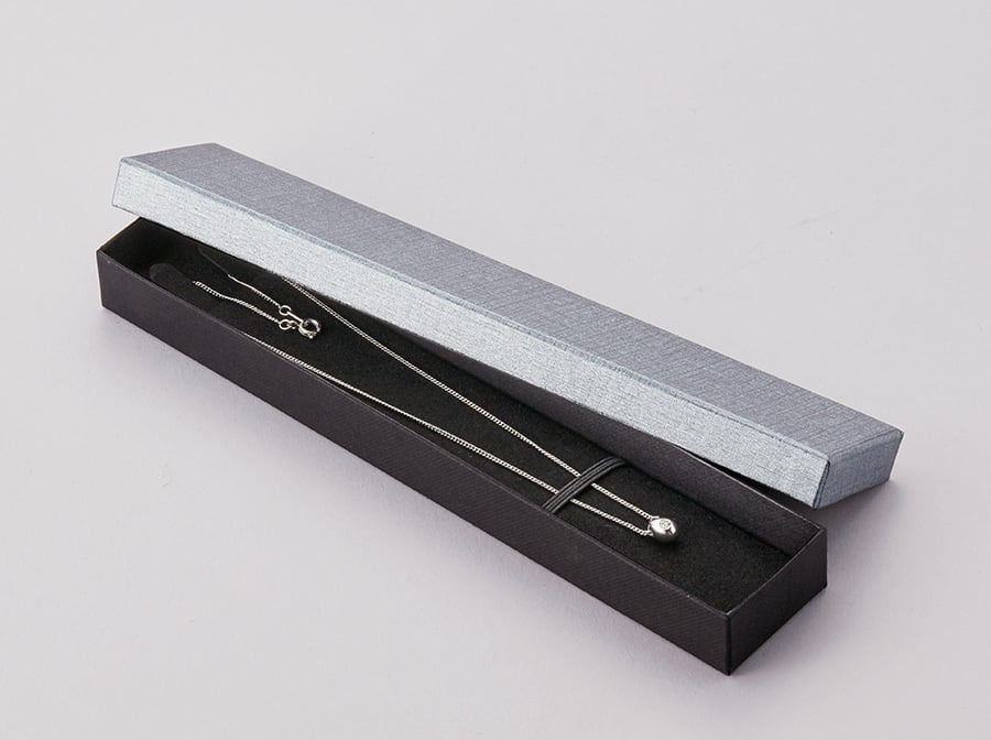 型番:AR-N247 サイズ:226×45×24㎜ 素材:紙:マット調エンボス入り 中台紙:ボール紙+スェード調生地ネックレス用爪付き 色:グレー/黒 低価格ながらエンボス入り紙のグレー/黒ツートンカラーでどんな商品にも合わせやすいボックスです。 納期:ご注文完了後約3日(営業稼働日)で発送させて頂きます。 リアルタイム在庫が変動している為、在庫切れの場合がございます。 予めご了承お願い致します。 在庫切れの場合は、納期を改めてご連絡させて頂きます。