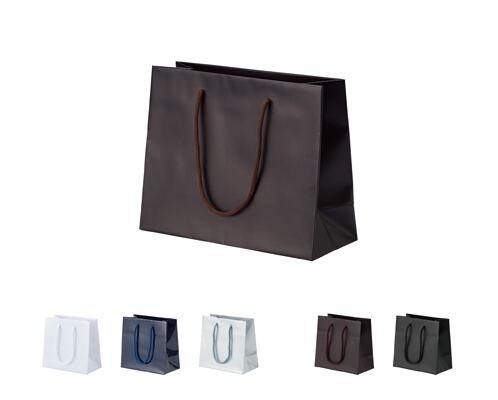 型番:AR-734 サイズ:250×100×200㎜ 材質:紙+PP加工 紐:アクリルスピンドル 色:光沢コート:白・紺・シルバー マットコート:焦げ茶・黒 アクセサリー・ジュエリー用ショッパーにぴったりなサイズ感です。 定番色が揃っていてブランドカラーに合わせてご利用ください。 ※ご注文後約3日で発送します。 在庫切れの場合は、納期をご連絡させて頂きます。