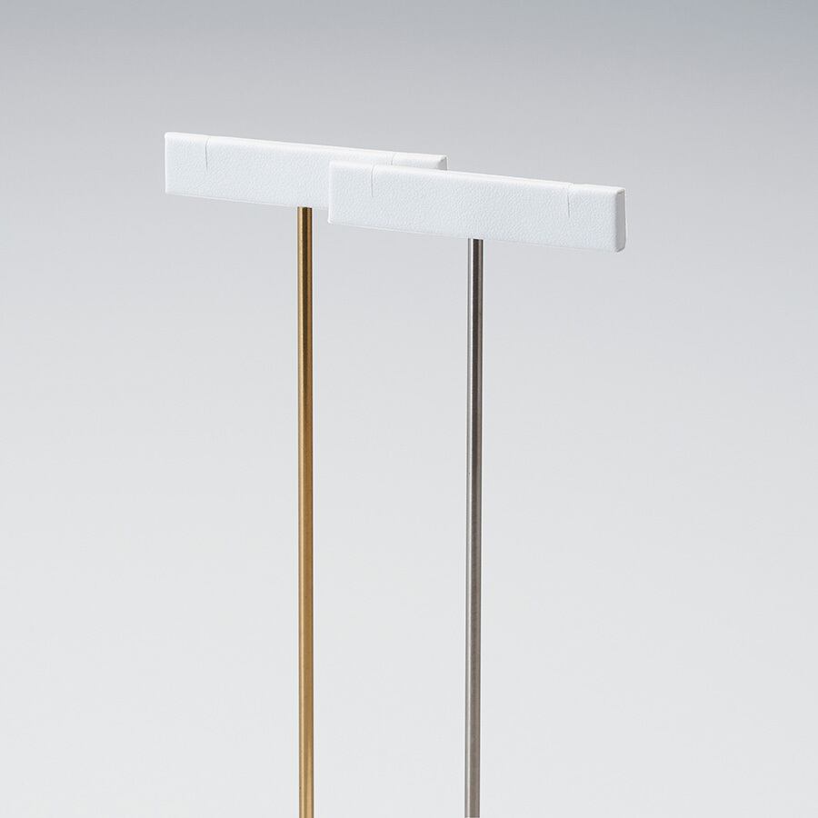 型番:AR-1981M サイズ:Mサイズ:60×40×135㎜ 材質:合皮ソフトブラン 脚棒部分金属:ゴールド色塗装orシルバー色塗装 色:生地色ホワイト きめ細やかなテクスチャーが特徴の高品質合成レザーで製作されています。 綺麗な仕上げて商品を引き立てます。 金属の脚棒がエレガントに演出します。 ご注文後約3日でお送りさせて頂きます。 在庫切れの場合は、改めて納期をご連絡させて頂きます