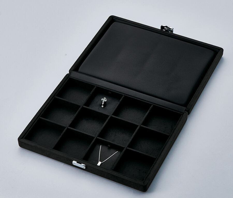 型番:AR-554 サイズ:295×235×47㎜ 材質:スェード調生地 色:ブラック ※中台紙(品番570シリーズ)は別売りとなります。 専用台紙をセットして商品のストックや持ち運びに便利なケースです。 蓋内側にはクッション性がある為、蓋を閉めた時に商品を優しく保護します。 ご注文後約3日でお送りさせて頂きます。 在庫切れの場合は、改めて納期をご連絡させて頂きます。