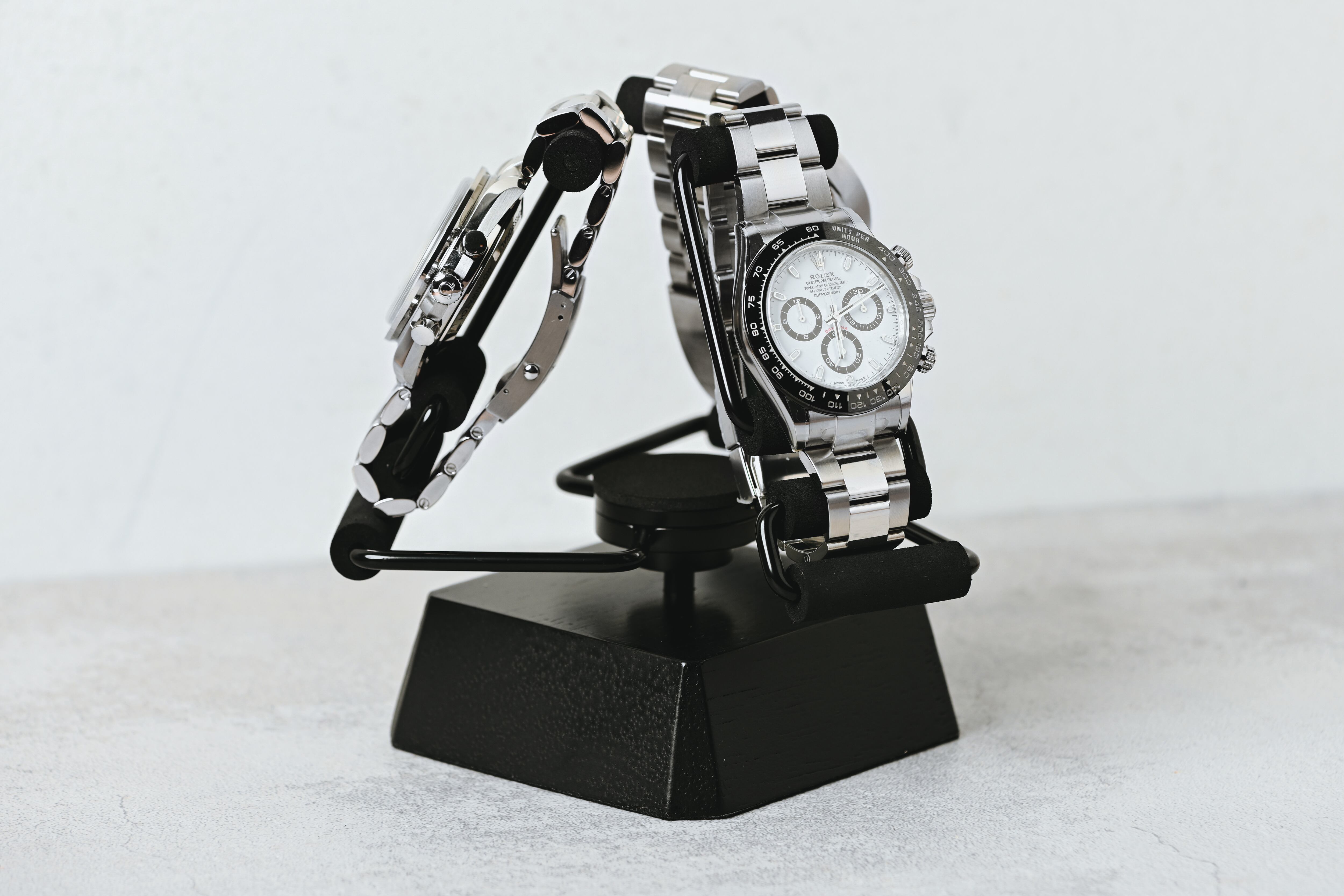 型番:SE2189005 サイズ:約130×D130×H125㎜ 約240g 素材:木製(ベース台)/合金/ラバー 色:ブラック(ベース)・木目ナチュラル(ベース) 化粧箱:透明ケース付き 腕時計をディスプレイする際やインテリアとしても楽しめるオシャレなデザインのウォッチスタンドです。 腕時計コレクターの方はもちろん、腕時計をお持ちの方は、あると便利なアイテムです。プレゼントやギフトにもおすすめです。 ※時計はイメージです。 納期:ご注文完了後約2日(営業稼働日)で発送させて頂きます。 リアルタイム在庫が変動している為、在庫切れの場合がございます。 予めご了承お願い致します。 在庫切れの場合は、納期を改めてご連絡させて頂きます。