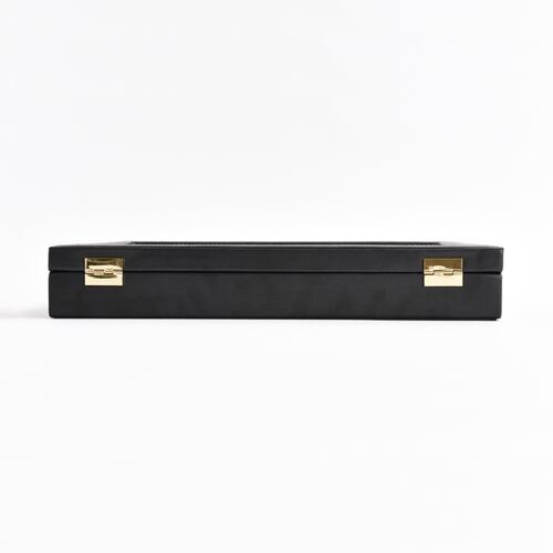 型番:C-240-452BK サイズ:W360×D300×H60㎜ 素材:合成皮革(PU)内装:ポリエステルスェード調生地 窓:アクリル 色:ブラック 化粧箱付き コレクションのメガネやサングラスをスタイリッシュに収納できます。 納期:ご注文完了後約3日(営業稼働日)で発送させて頂きます。 リアルタイム在庫が変動している為、在庫切れの場合がございます。 予めご了承お願い致します。 在庫切れの場合は、納期を改めてご連絡させて頂きます。
