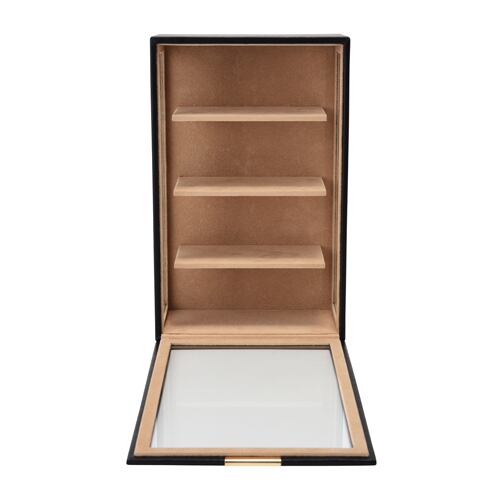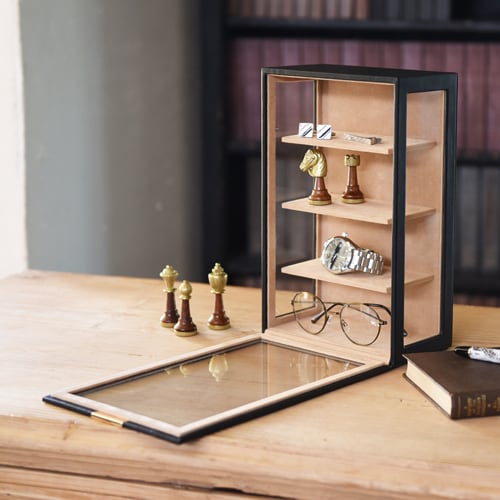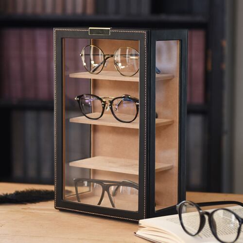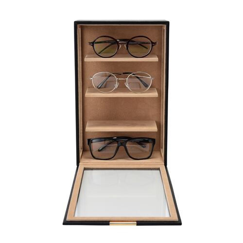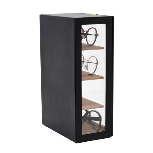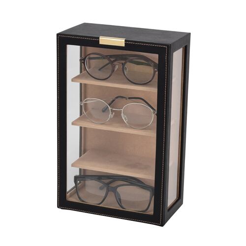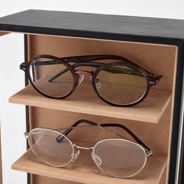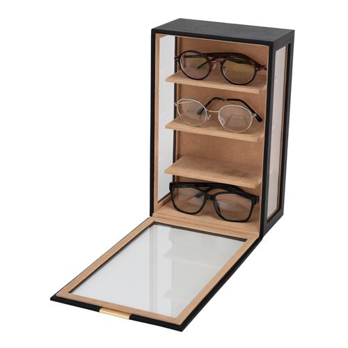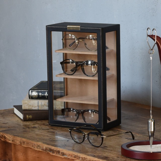 型番:C-240-453BK サイズ:W190×D110×H300㎜ 高さ65㎜までのメガネを4本収納可能 素材:合成皮革(PU)内装:ポリエステルベルベット調生地 窓:ガラス 色:ブラック 化粧箱付き メガネ以外にもディスプレイラックとしてご利用頂けます。 納期:ご注文完了後約3日(営業稼働日)で発送させて頂きます。 リアルタイム在庫が変動している為、在庫切れの場合がございます。 予めご了承お願い致します。 在庫切れの場合は、納期を改めてご連絡させて頂きます。