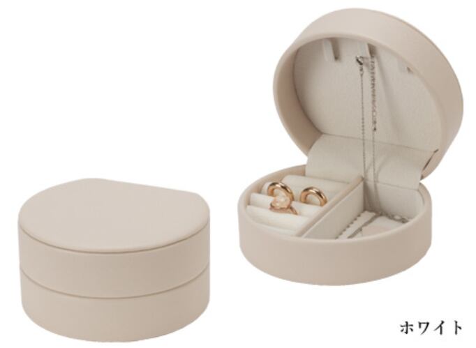 型番:AO-JP-1983G サイズ:W109×97×57㎜ 素材:外装:合皮 内面:スェード調 色:ベージュ・ホワイト 外箱:白化粧箱付き 貝のような丸みが可愛いミニジュエリーボックスです。 ネックレスも収納できてノベルティに最適です。 大切なジュエリーを見やすく、そして美しく収納してくれるジュエリーボックスです。 こちらのジュエリーボックスは、合皮レザーで出来ています。 フェミニンな印象の丸いフォルムがポイント。 ジュエリーを魅力的に演出したい方へ。 高級感のあるスエード調の内装と合皮レザーの外装で、あなたのジュエリーの必須アイテムになります。 優しいスエード調により、ジュエリーを保護し、安心して収納することができます。 納期:ご注文完了後約3日(営業稼働日)で発送させて頂きます。 リアルタイム在庫が変動している為、在庫切れの場合がございます。 予めご了承お願い致します。